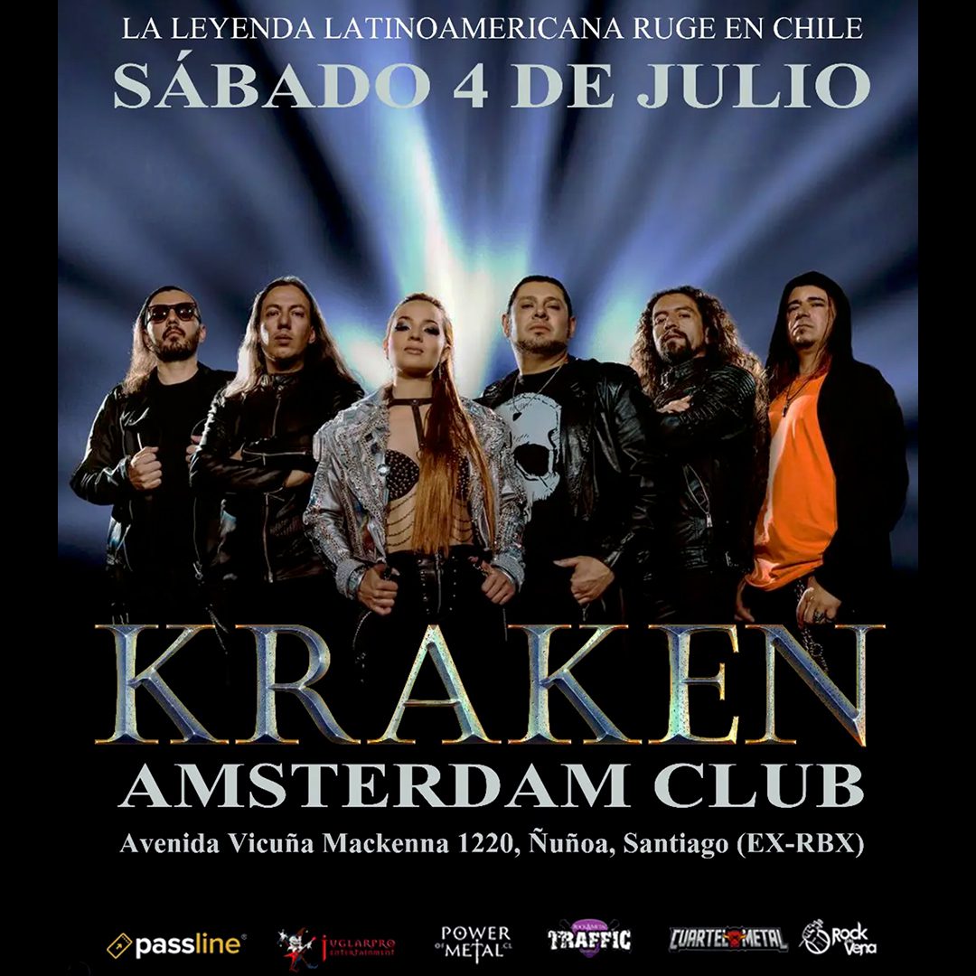 04/07/2026 Santiago - Chile Get Tickets Venue: Amsterdam Club Address: Av. Vicuña Mackenna 1220, Ñuñoa, Región Metropolitana, Chile State: Santiago Country: Chile Website: https://www.passline.com/eventos/kraken-en-chile